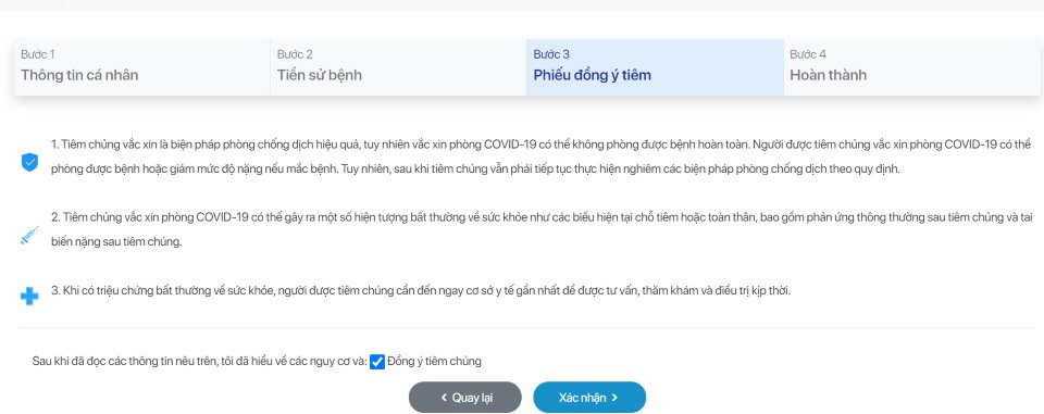 Bước 3: Phiếu đồng ý tiêm chủng