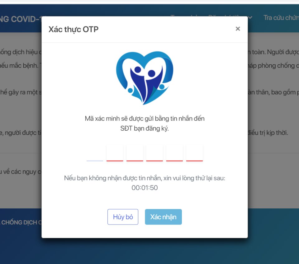 Hệ thống sẽ gửi mã OTP về số điện thoại đã đăng ký, nhập mã OTP, chọn "Xác nhận".