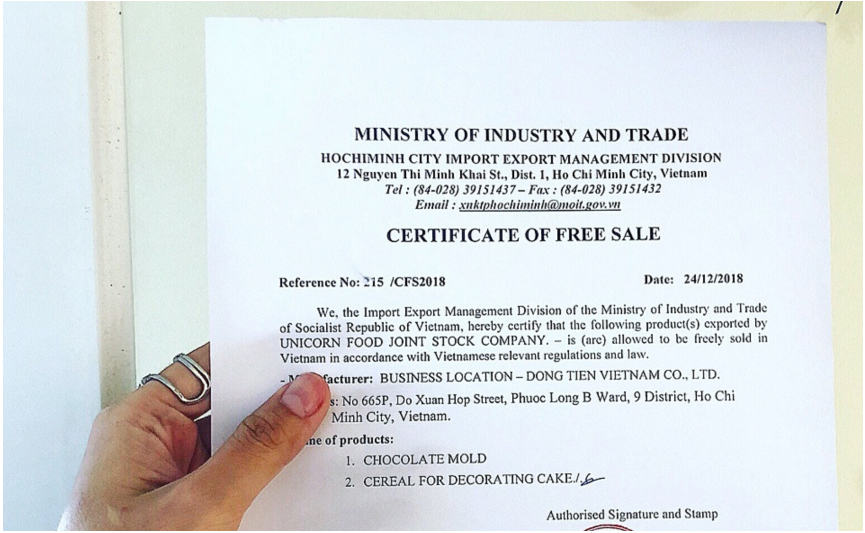 hành tự do CFS là một trong các loại giấy tờ quan trọng đối với sản phẩm
